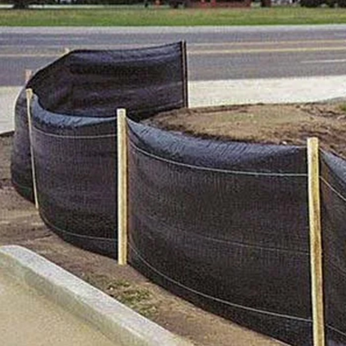 Temporary sediment control barrier made of woven fabric supported by posts. Designed to slow runoff and trap sediment on construction sites when properly installed downslope of disturbed areas. Available in commercial and DOT grade: 3′ x 100′ with stakes attached, 3′ x 330′ without stakes attached.